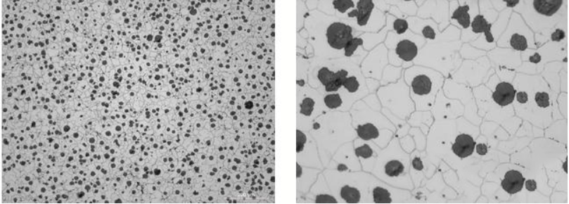 Seetõttu saavutatakse empiirilise vaatluse põhjal kõrgtugeva malmi süsiniku ekvivalendi ülempiir siis, kui sulamalmis (temperatuuril umbes 1200°C) täheldatakse ujuvat grafiiti. Süsinikusisalduse mõju kõrgtugeva malmi toimimisele:Süsinikusisaldus kõrgtugevast malmist valandites mõjutab tahkestumise või grafiidi keskmisele arvule sadestuvat grafiidi kogust. sfäärid. Tavaliselt on süsinikusisalduskõrgtugevast malmist valandidjääb vahemikku 2–3,9%, kuid on oluline mõista süsinikusisalduse vähendamise mõju malmi mehaanilistele omadustele. Seda tuleks arvesse võtta konstruktsiooni, mõõtmete, seina paksuse ja külgnevate tasapinnaliste seinte seinapaksuse vigade põhjal.kõrgtugevast malmist valandid. Kõrgtugeva malmi süsinikusisalduse vähendamine umbes 4%-lt 2,5%-le võib veidi suurendada tõmbetugevust ja voolavuspiiret (ligikaudu 23 kuni 31 N/mm²) ning suurendada venivust ligikaudu 5%, parandades oluliselt löögiväärtusi.